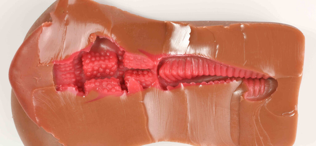 两组肉脊虽结构类似,但互相填满空隙的设计,使得牛子被包围得无处可逃,被肉壁紧紧含住