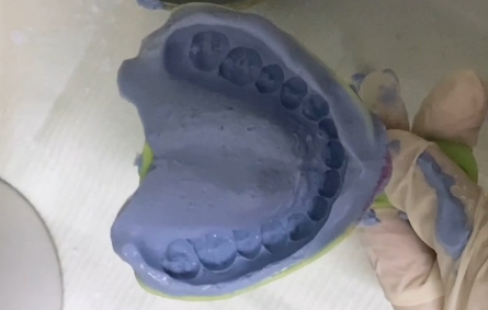 牙齿咬合施加压力使材料变形,过一段时间材料硬化后再取出材料,这样就能得到精确的牙齿模型