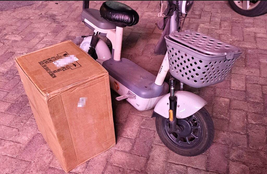 包装大小参照(这里就拿随处可见的小电动车和小板凳来当参照物)