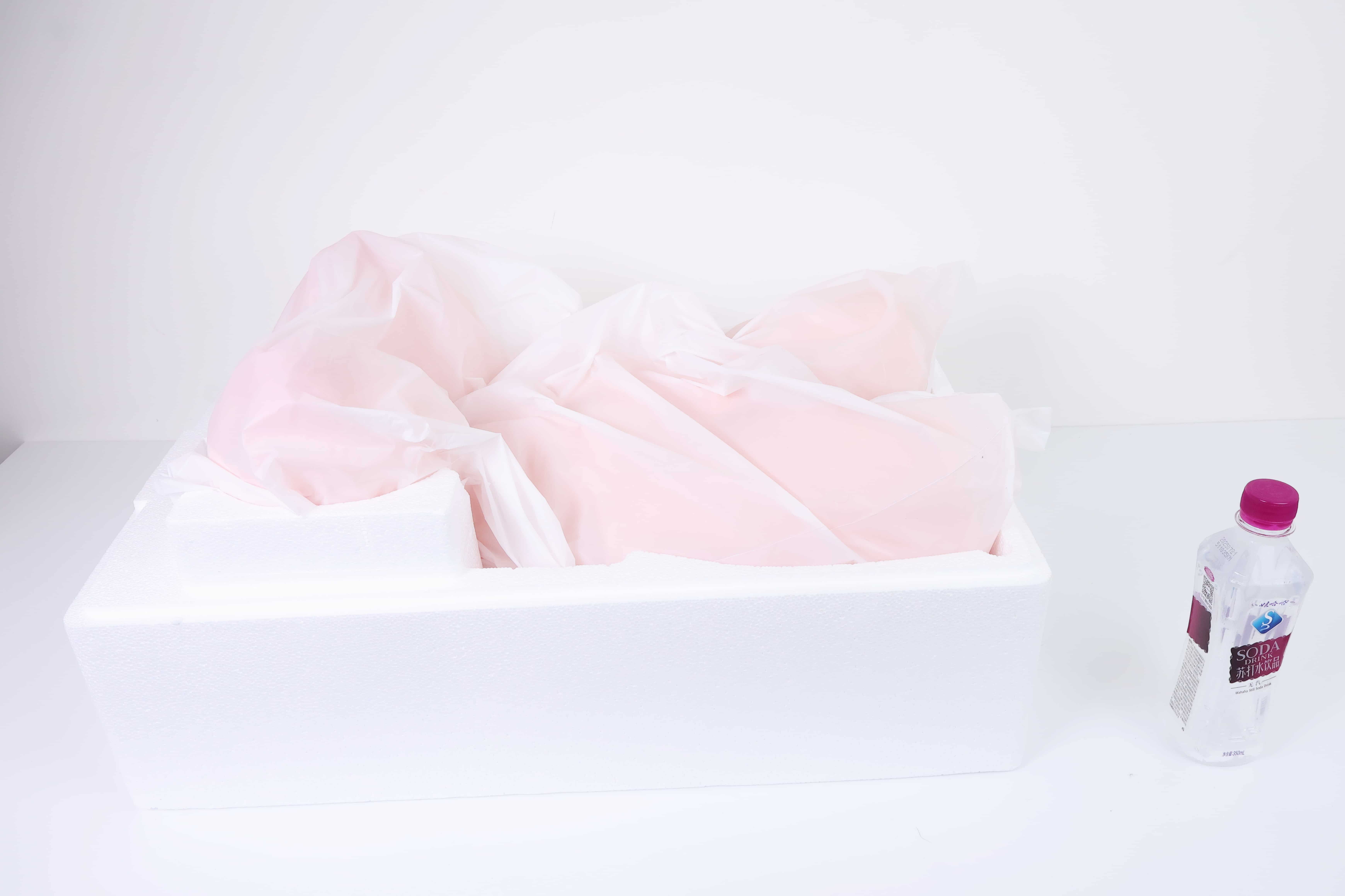 拆开外包装,还好里面包装非常的厚实,两个这么厚的泡沫纸板包裹得非常彻底,好评的是内塑把奈子夹住了防止下坠撕裂