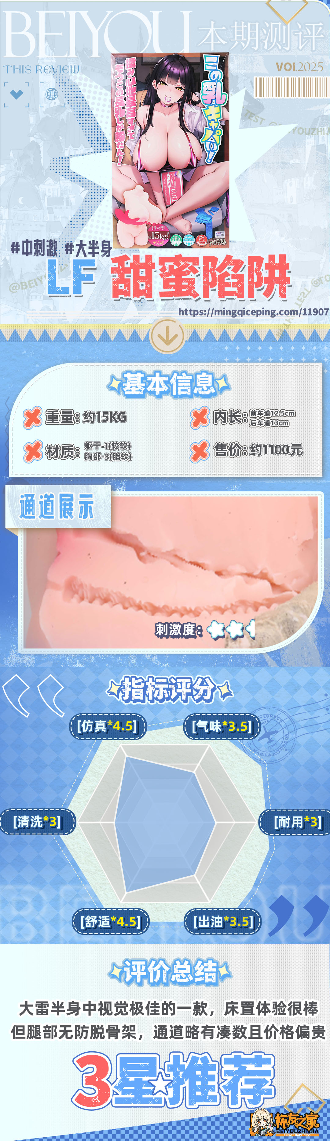 通道是肉瓣剐蹭结构,整体而言还是比较平顺慢玩。我用过的所有半身中只有魔法星使刺激度比他低,其他的半身都要比这个高