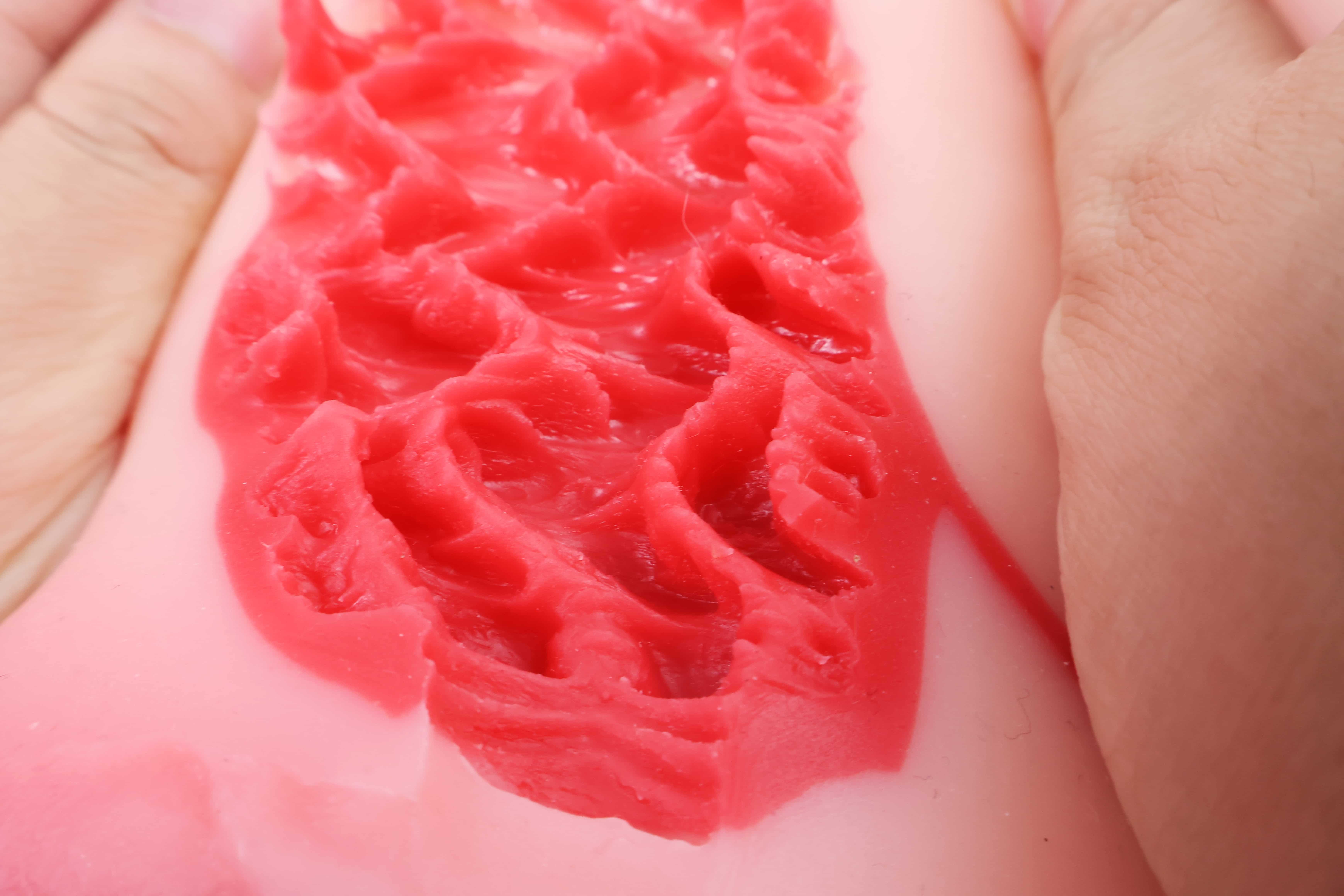 可以看到内部的部分结构有些类似于白丝1、狂热曼波那类三角肉壁结构。不过夜魅的成型比较散乱,通道较为宽敞不像杯子那么紧,所以实际用起来并没有想象中那么刺激