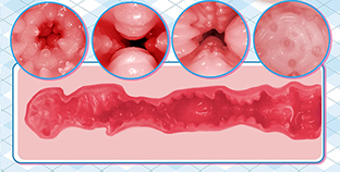 右边是通道展示细节图:颗粒圈,柱状隆起,不规则肉突,末端带肉粒的子宫结构