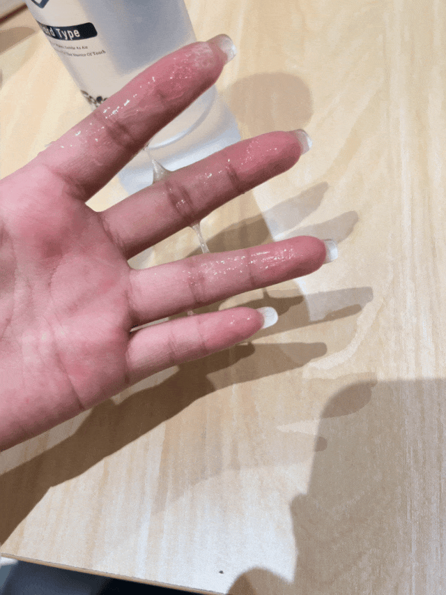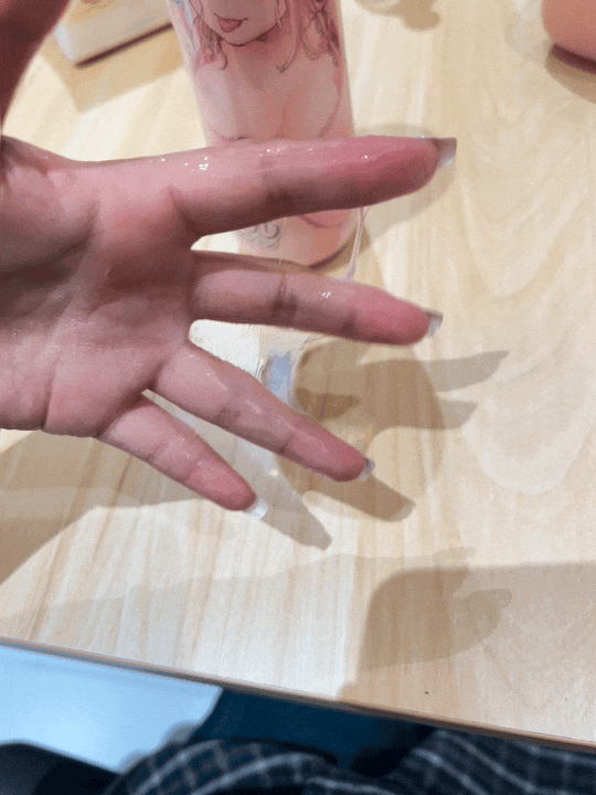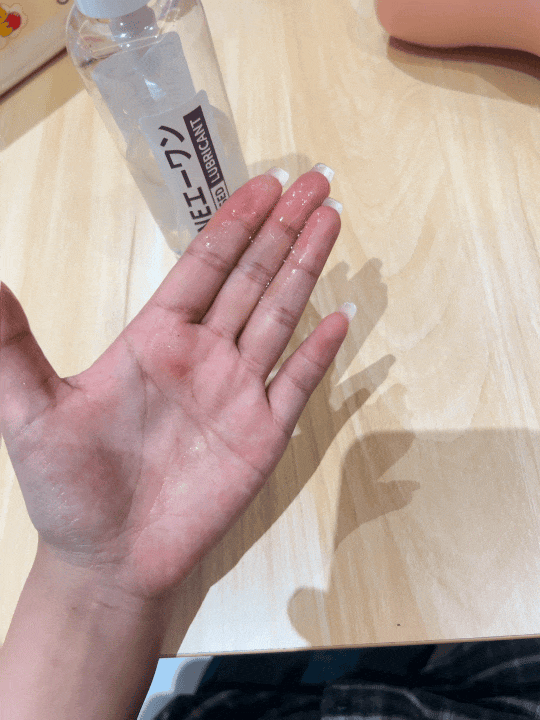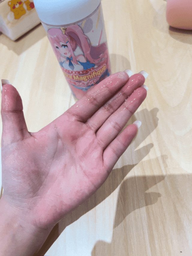 很轻薄,但也水润得夸张。我刚挤到手上,润滑就顺着指尖流得到处都是