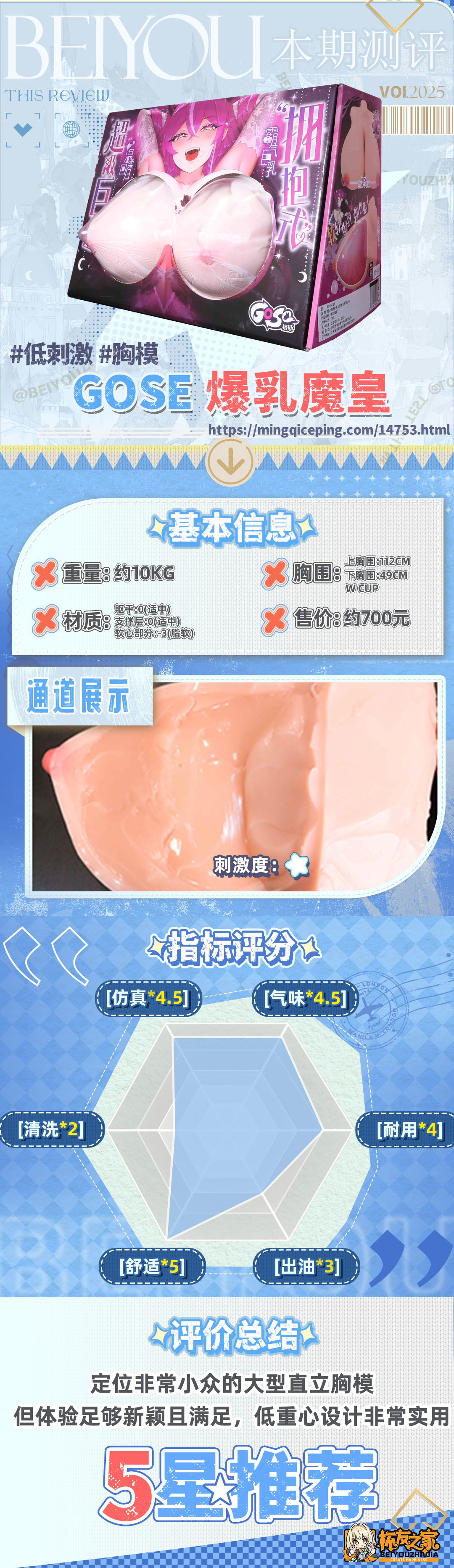 日本那边倒是有类似设计的胸模,不过国内倒是一直都缺失“直立胸模”这条赛道。也许是因为日本杯友的XP更加五花八门,所以对小众领域探索更加成熟,而国内则还钟情于好用的通道或是“我全都要”的阶段。所以相比之下牢牛觉得gose还可以再大胆一点,比如把乳头做成带黏膜感的内陷通道,这样应该还可以更受欢迎一些