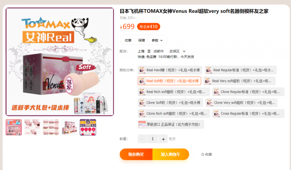 最近“杯友之家成人用品专营店”里,大魔王维纳斯系列正品上架促销,平时购买需要500+的大魔王,已经降价到“410元”。