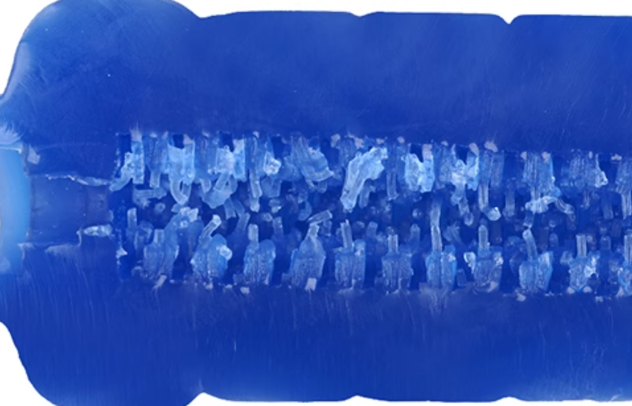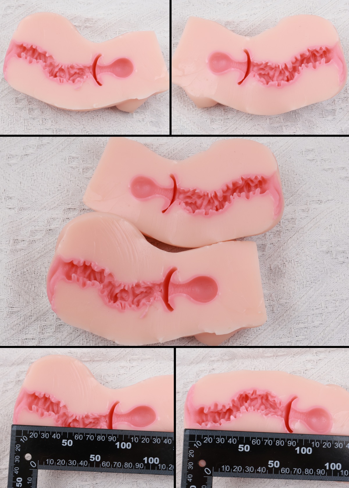 通道长约12.5cm,内部同样使用了-1(较软)硬度的粉色材料。通道内纹理全部呈现一种对称的乱序排布,类似火炮那款“吸睛魔王”,哪怕是玩久了也不会觉得太无聊;不过毕竟是款慢玩,纹理很软且凸起并不是很大
