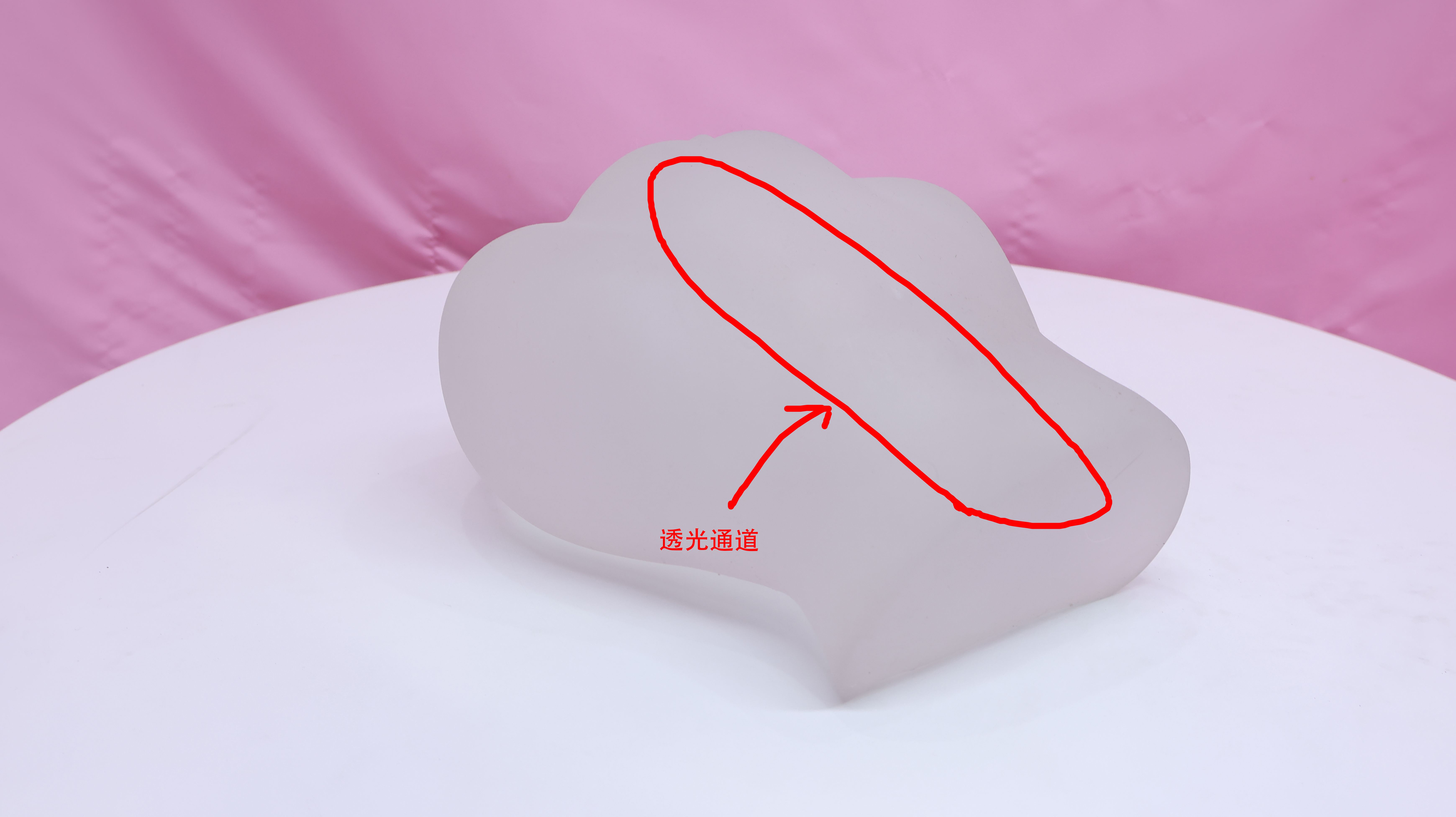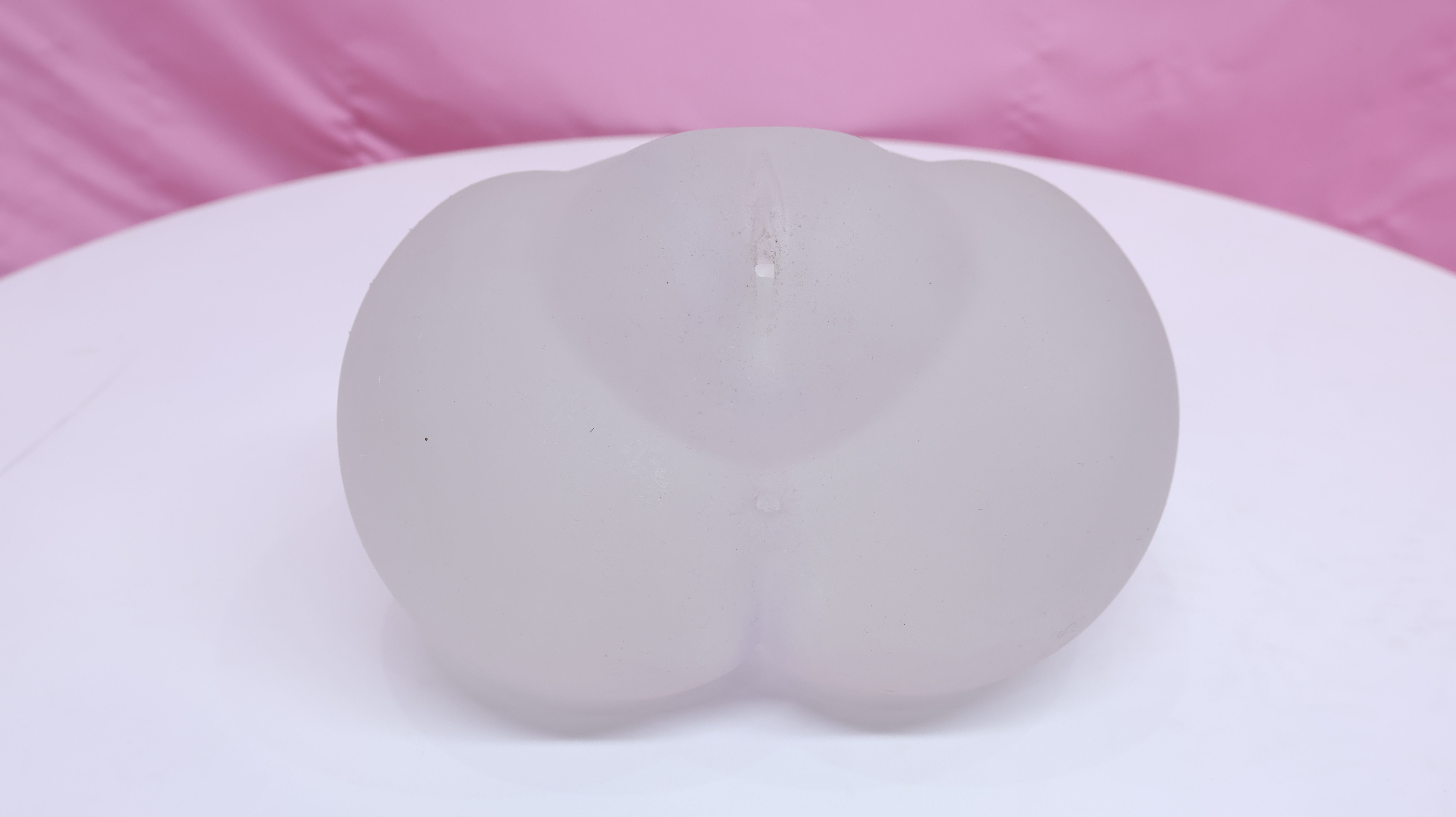 臀模通体透明,从外面就能看到通道口的一圈软胶,在白色背景下不太清晰。