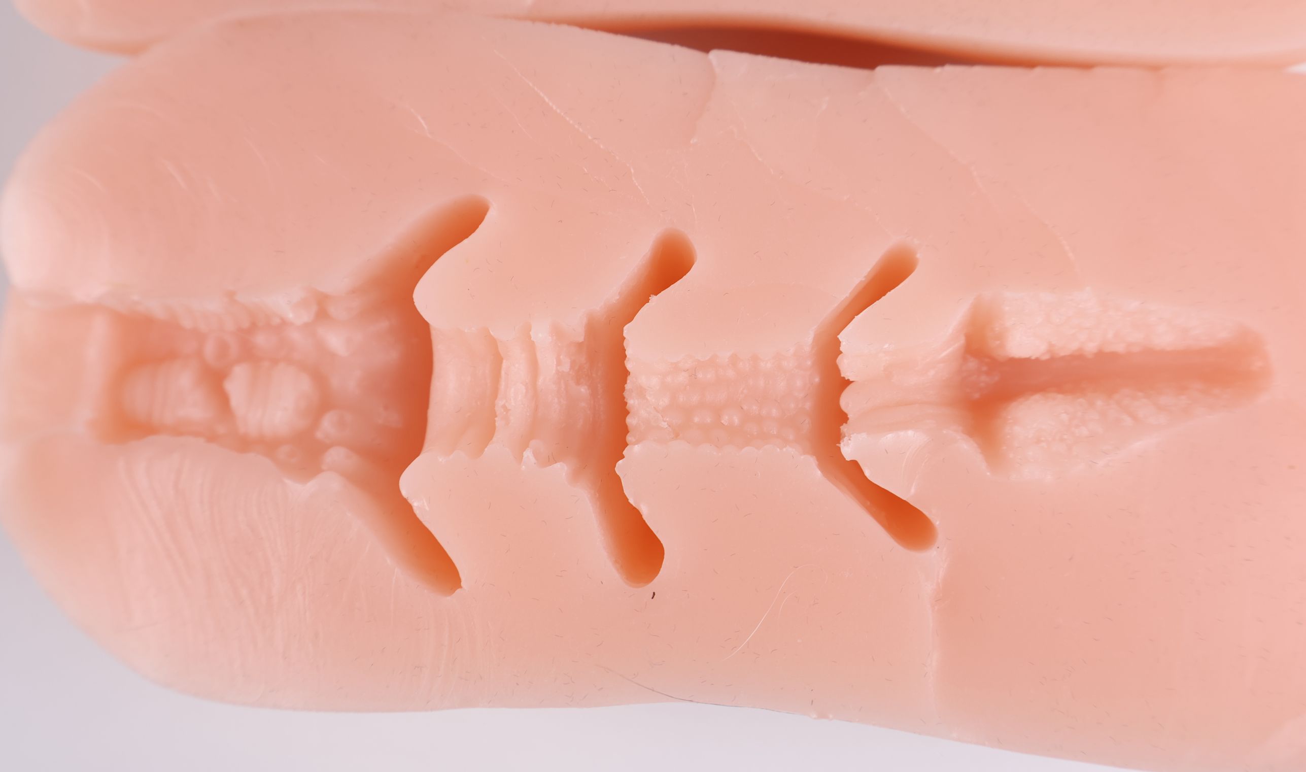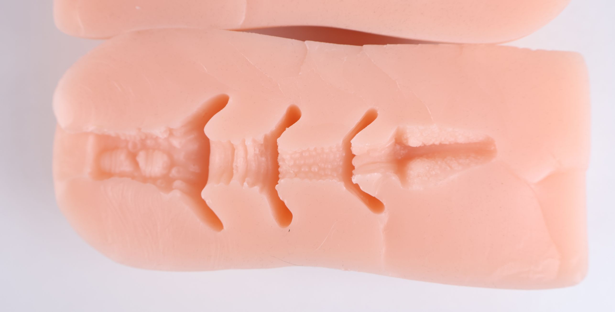 当牛牛深入的时候,三角肉壁会将牛牛牢牢扣住,使得牛牛不容易能够顶出咬合结构到达杯腔边缘。