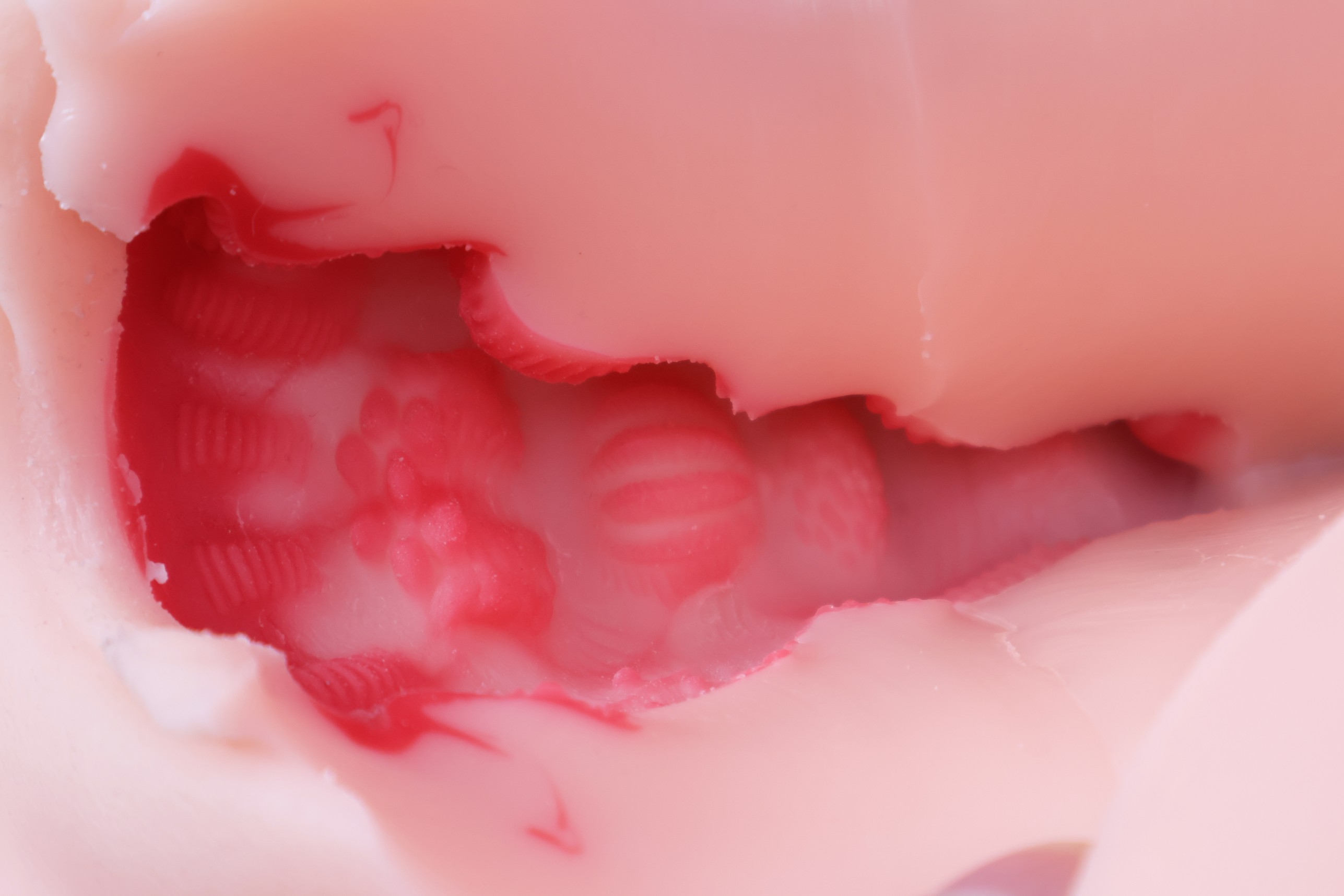 一代通道结构以紧迫的颗粒以及横纹为主,而二代通道全是蜿蜒峭壁般的褶皱,腔体结构更是玩出了花,不同形状的肉壁和纹路共同搭建起各式各样的小舞台