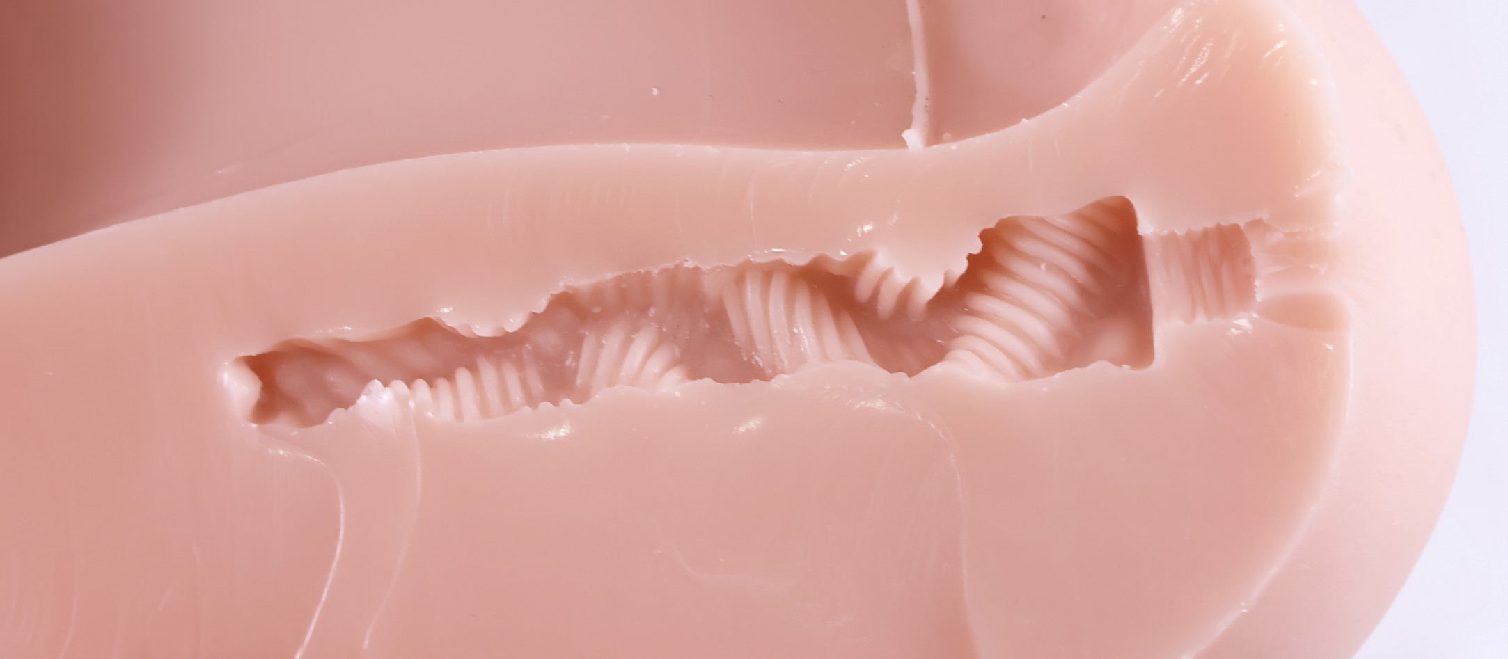 内胆塞入过程中,炮架开口边缘会向内胆施加挤压,达成辅助排气的效果,解决了普通臀模难以排气的痛点
