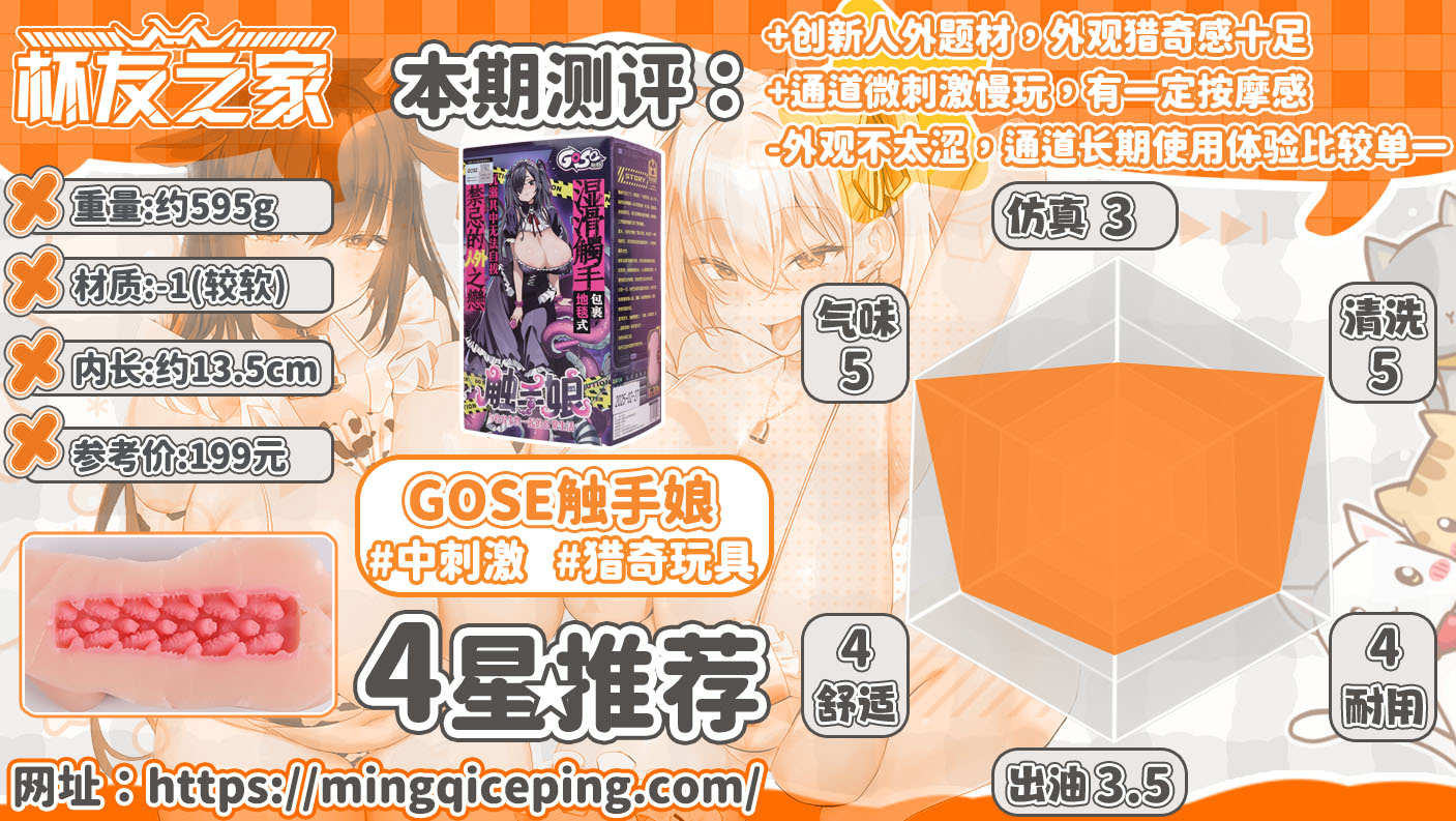 对笔者个人的敏感程度来说,在排了气之后是能够达到3的,但也是因为软度,可能在你没有充分硬起来的时候可能感觉达不到那么刺激,这个得视个人情况而言。刺激或不刺激,To be or not to be,触手娘就像旧日支配者一般不可名状。