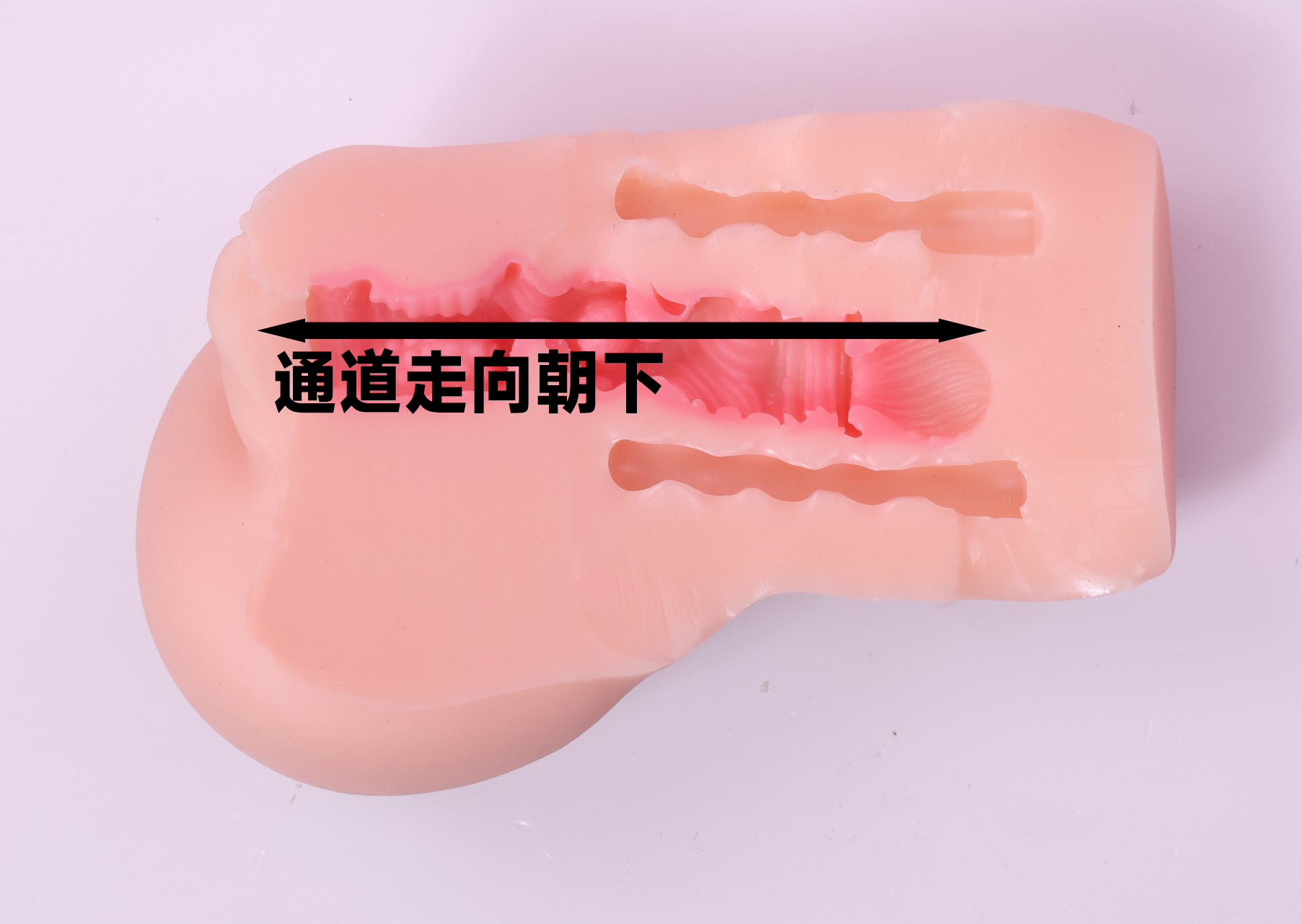 且由于通道走向向下(偏向臀部一侧) 使得正向使用(牛牛向奈子一侧自然弯曲)有很高概率出现顶胶问题 我这里就出现了顶胶情况