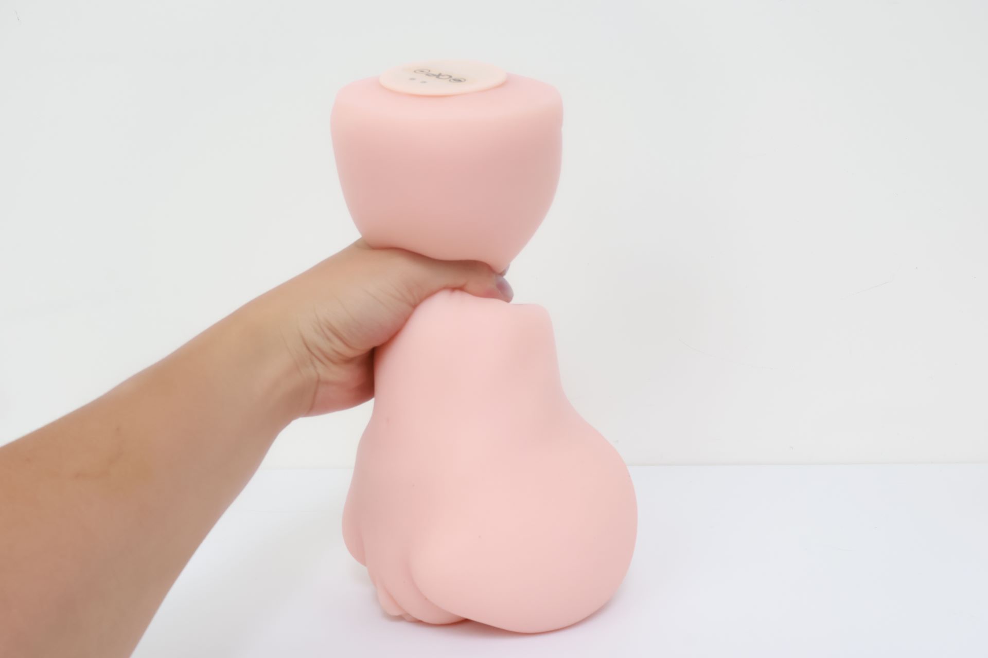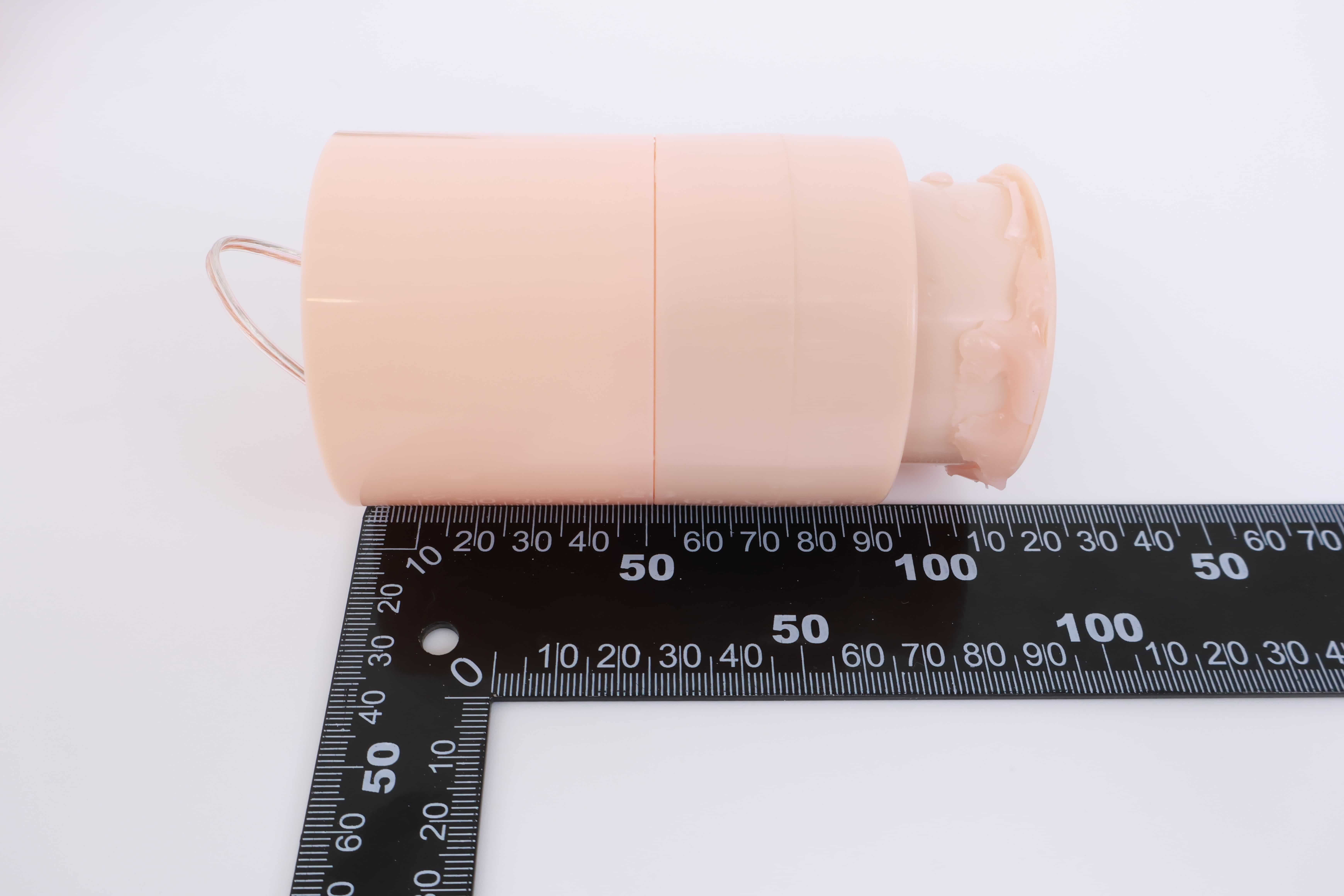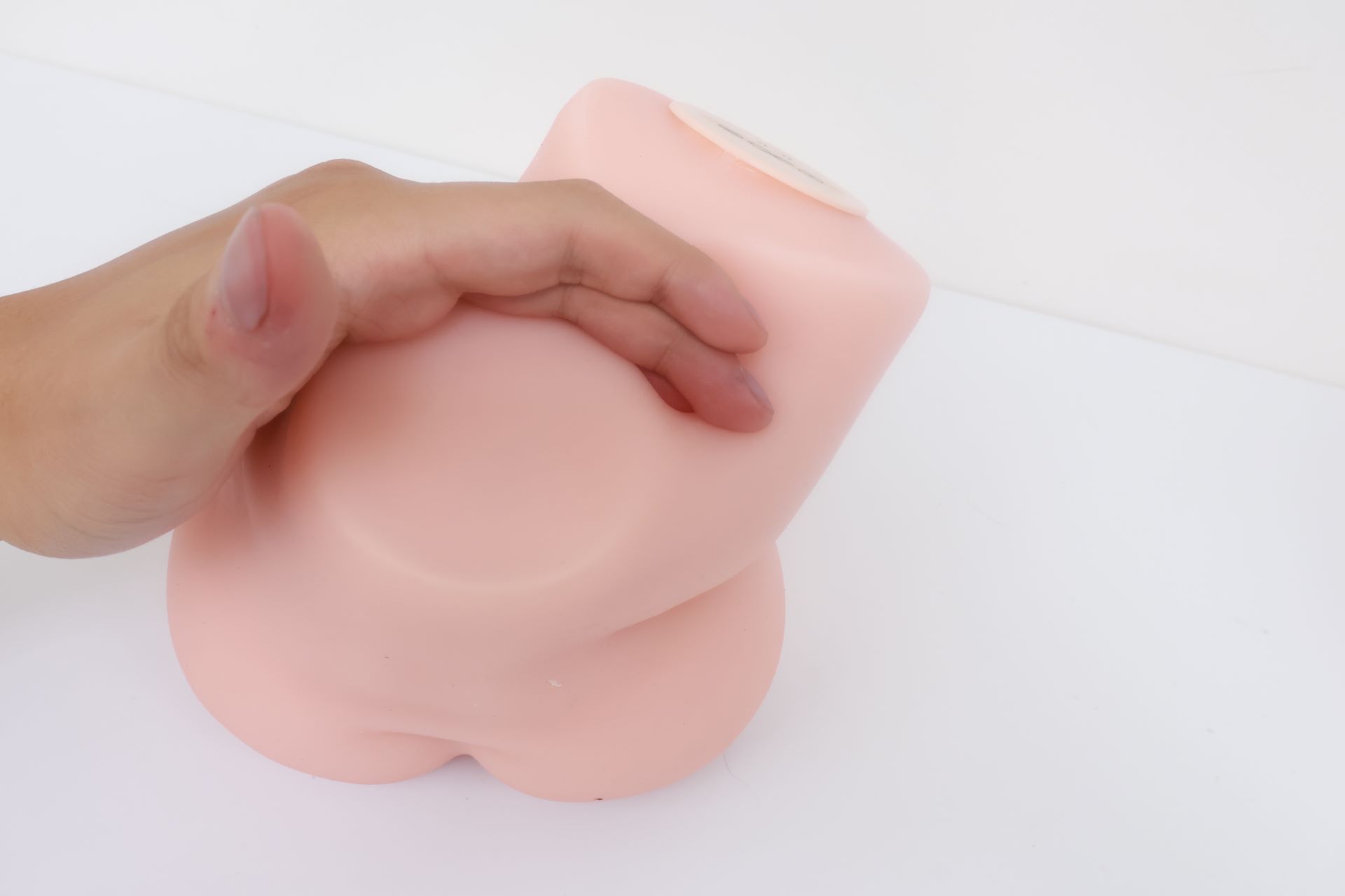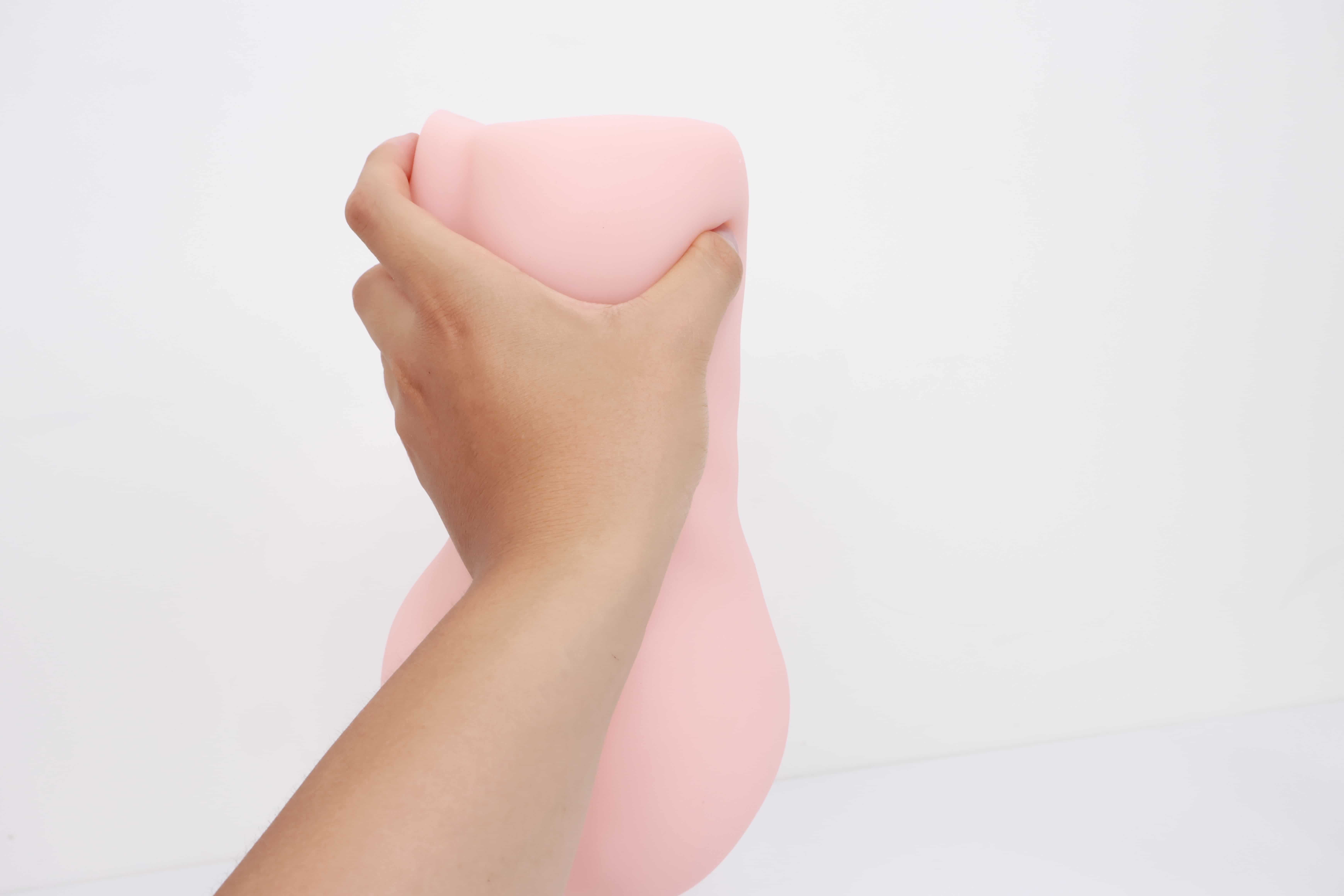 看我手卡的位置,这也是一个明显的分界线,左边就是电机,右边就是胶体,两边软硬完全不同,因为电机实在是太大了,这一部分占据了整个杯子一半的空间,冲的时候如果握到上端会感觉很硬很滑,白丝3代通道末端的子宫藏在电机内一部分,体验感不太明显。