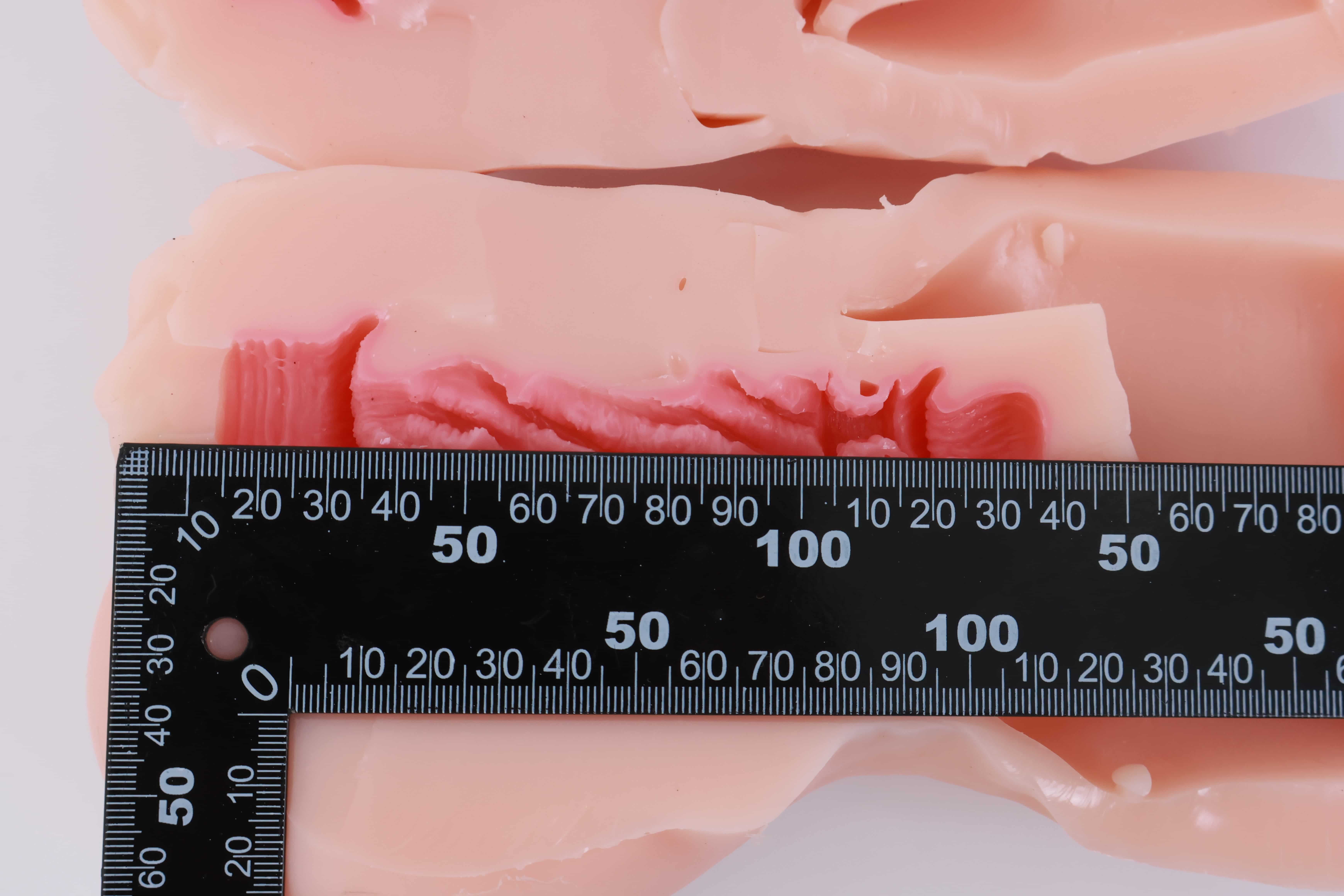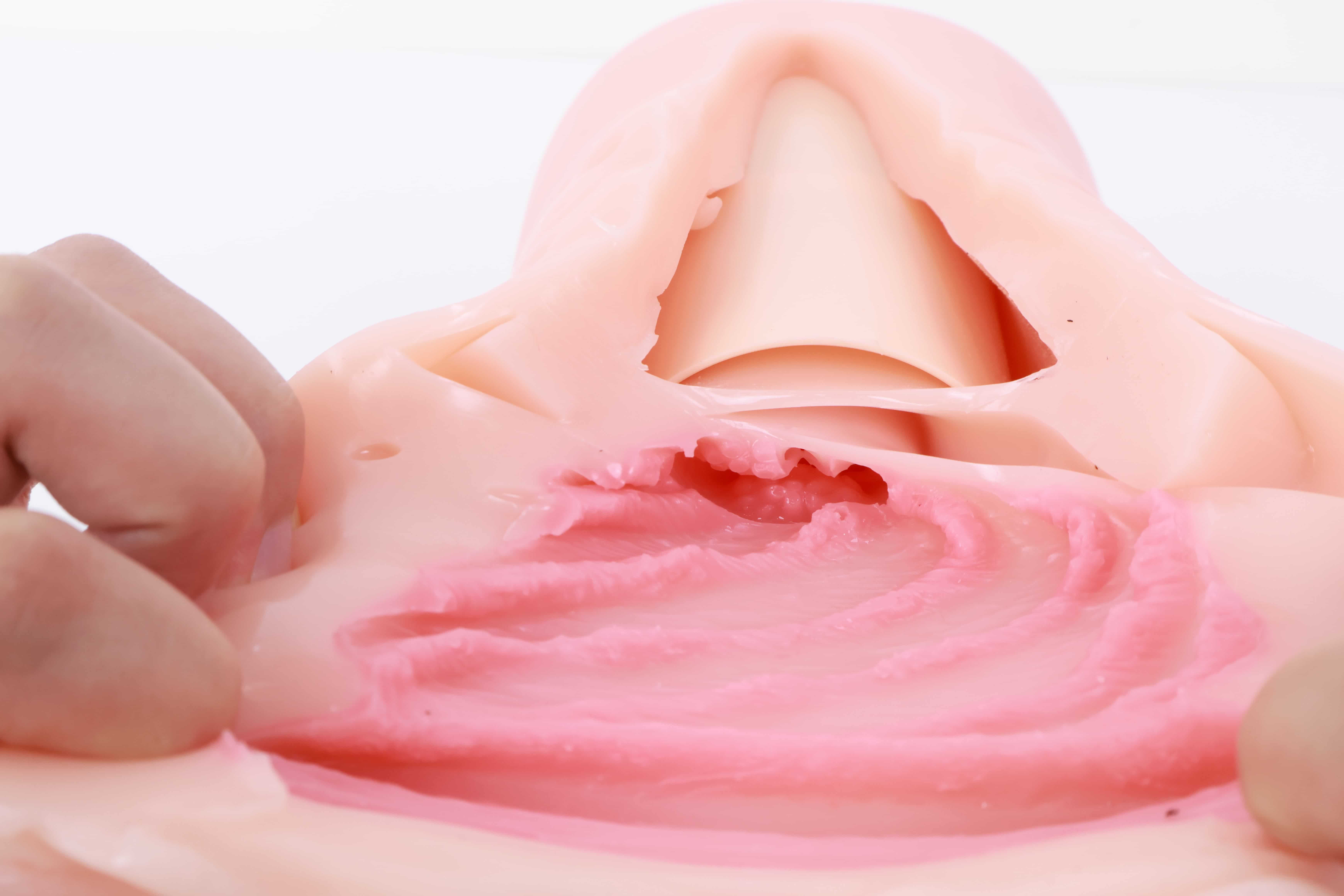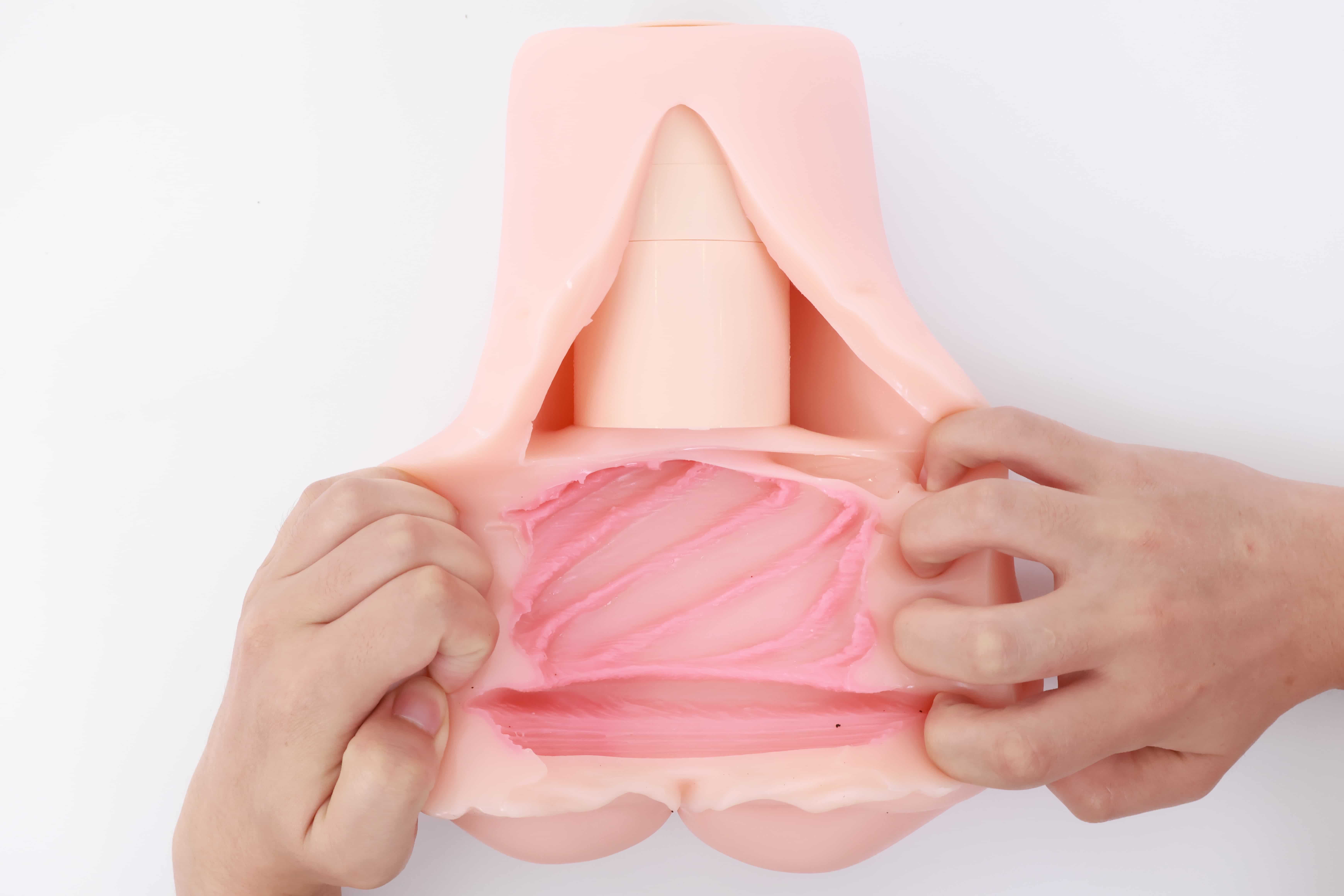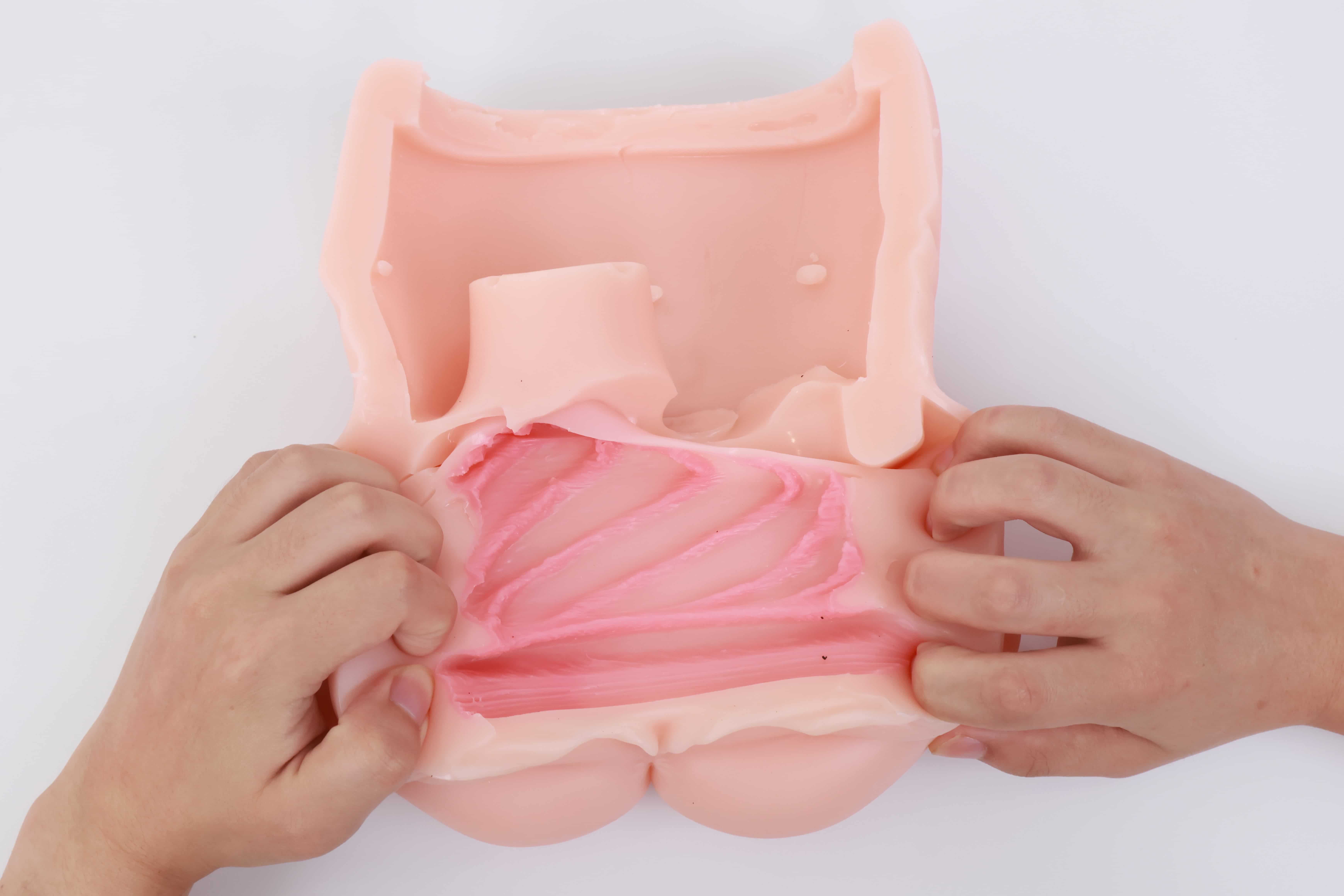对半剪开之后其实能发现这款通道并不短,和手动版的一模一样,但是因为电机和胶体厚度的缘故,阻碍了”恨塞蛋”的深度插入,所以并不能像传统手动杯那样顶胶桩基,爽感此时只能由你寻找和电机之间的默契来配合。