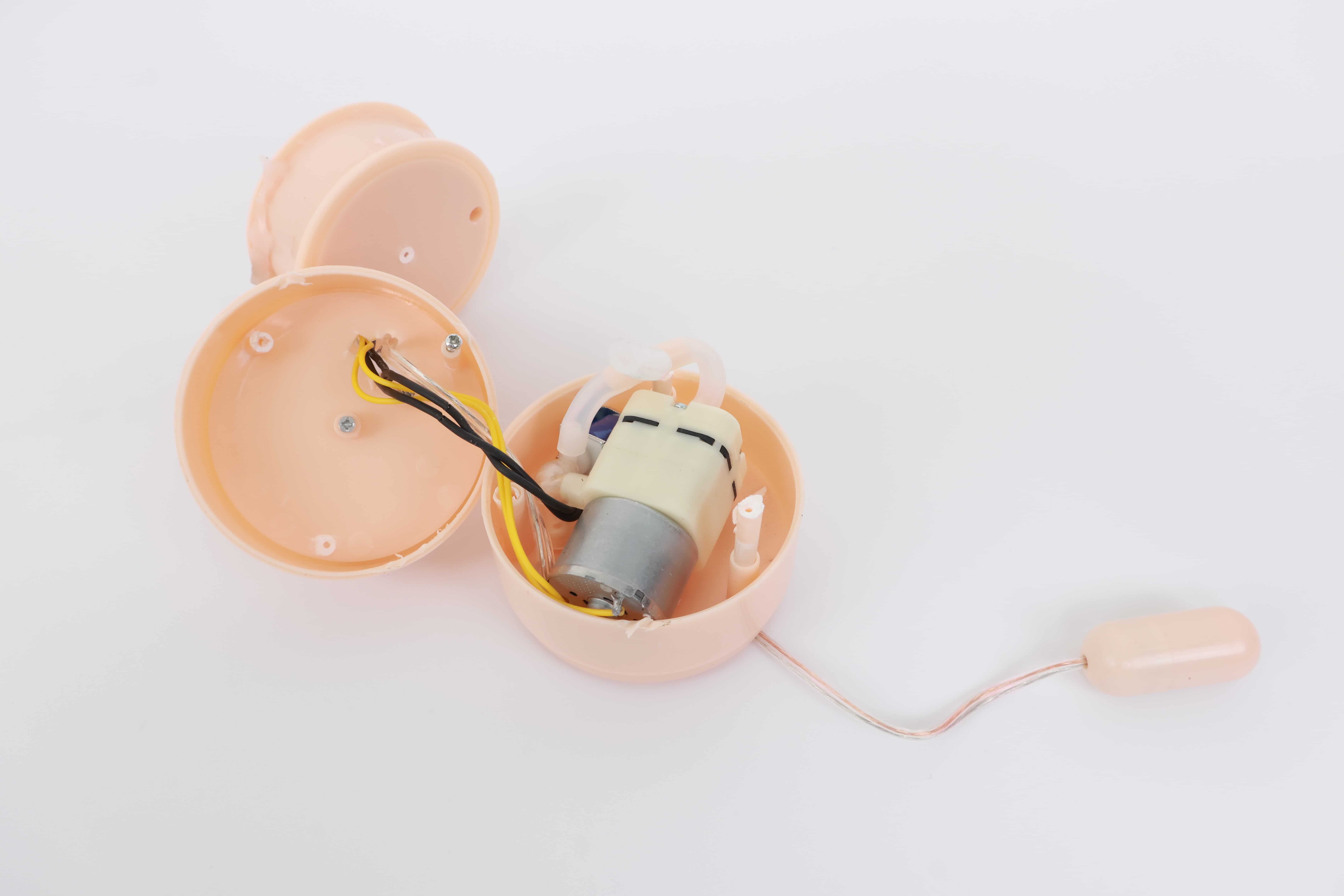 把胶体剪开取出电机之后可以看到子宫段是被放在一个圆柱壳子中的,胶体上方开了一个孔放了跳蛋,但这个跳蛋的功率说实话还挺大的,在你鬼头上方隔了一层胶体震动能让整根牛子为之震动,因为这种纯粹的震动所致,会让你在冲的时候牛子忽略了来自通道的纹理刺激,不过也倒符合电机站主角位置。