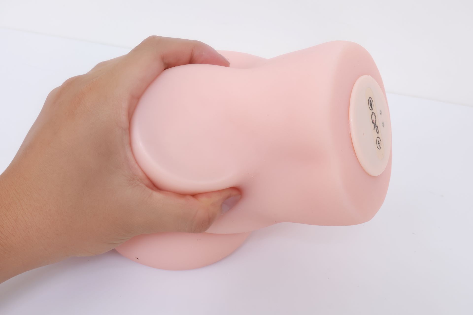 胶体顶部有三个按钮,嘴巴按钮是吸气的模式、GXP的LOGO是启动按钮、电力标是震动的模式、另一个小孔就是排气孔,电机开始运作之后有经典国产电机”滋-滋-崩”的声响,震动加上排气,声音还是比较大的。