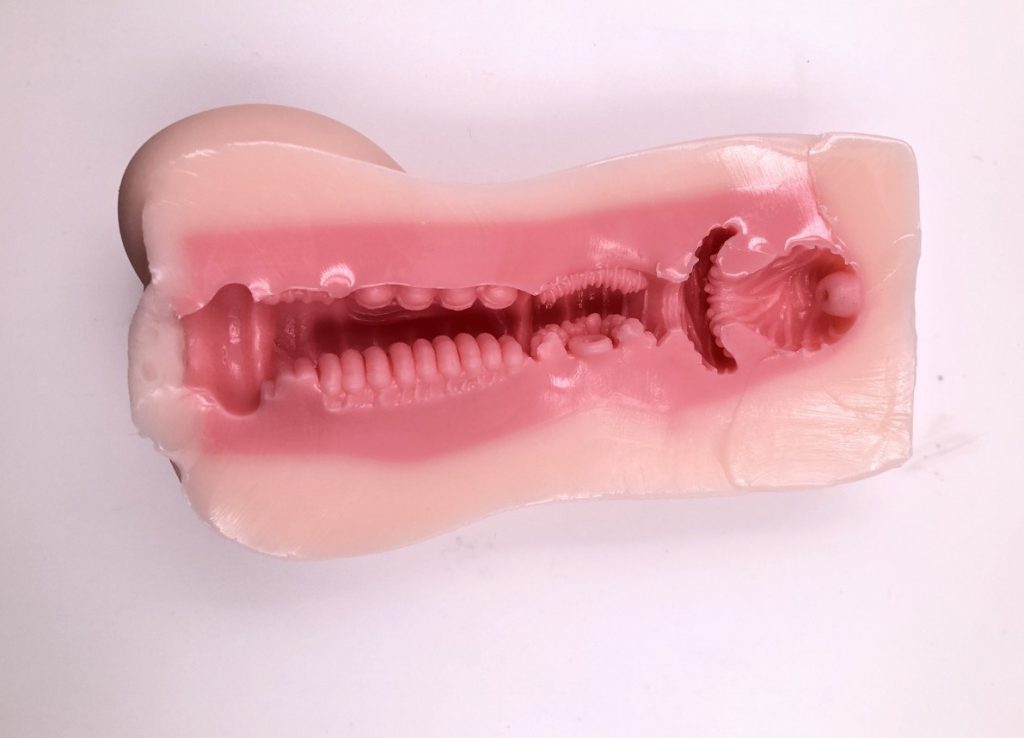 整体的通道给大家的感觉就是这是一款刺激型的名器,在名器的前端就毫不客气地采用了大凸点的设计,而且上下各不相同,一边是一大段的环状突起的刺激肉棒,一边是两列的小肉珠。可以说一边是强势刺激的压迫另外一边就是温柔又不失抚爱的包容,让小兄弟刚进入就“仍人摆布”一样在肉林丽探索。