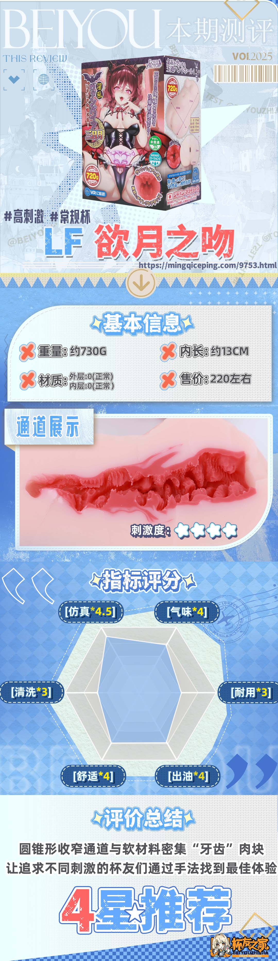 一开始牢杯对这款“欲月之吻”其实抱有的期待值并不是很高,毕竟是LF少有的高刺激飞机杯